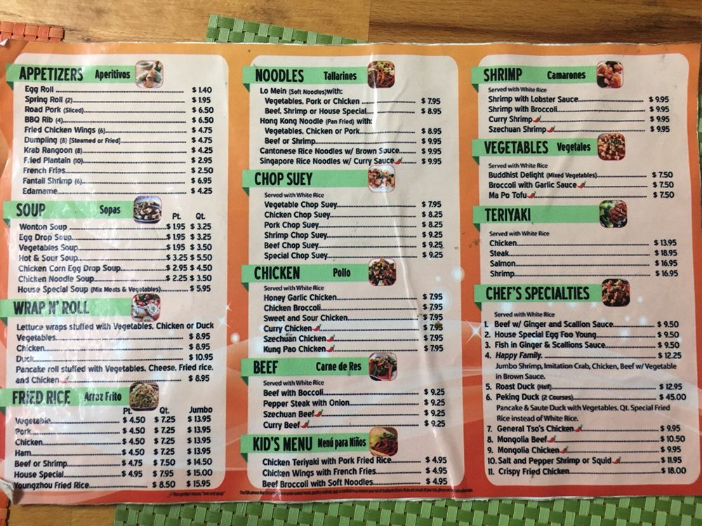 Vegetable, pork, chicken, beef, shrimp, or house special / Vegetale, cerdo asado, pollo, carne, camarones o especial